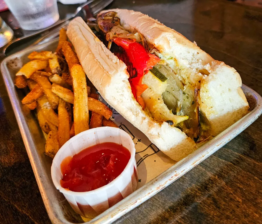 The food is delicious, and an interesting mix of simple pub fare sandwiches and pan pizzas. This is definitely an excellent place for those looking for a larger collection of vegan and vegetarian options. For this visit, we both tried something from the vegan and vegetarian menus, and we were great!